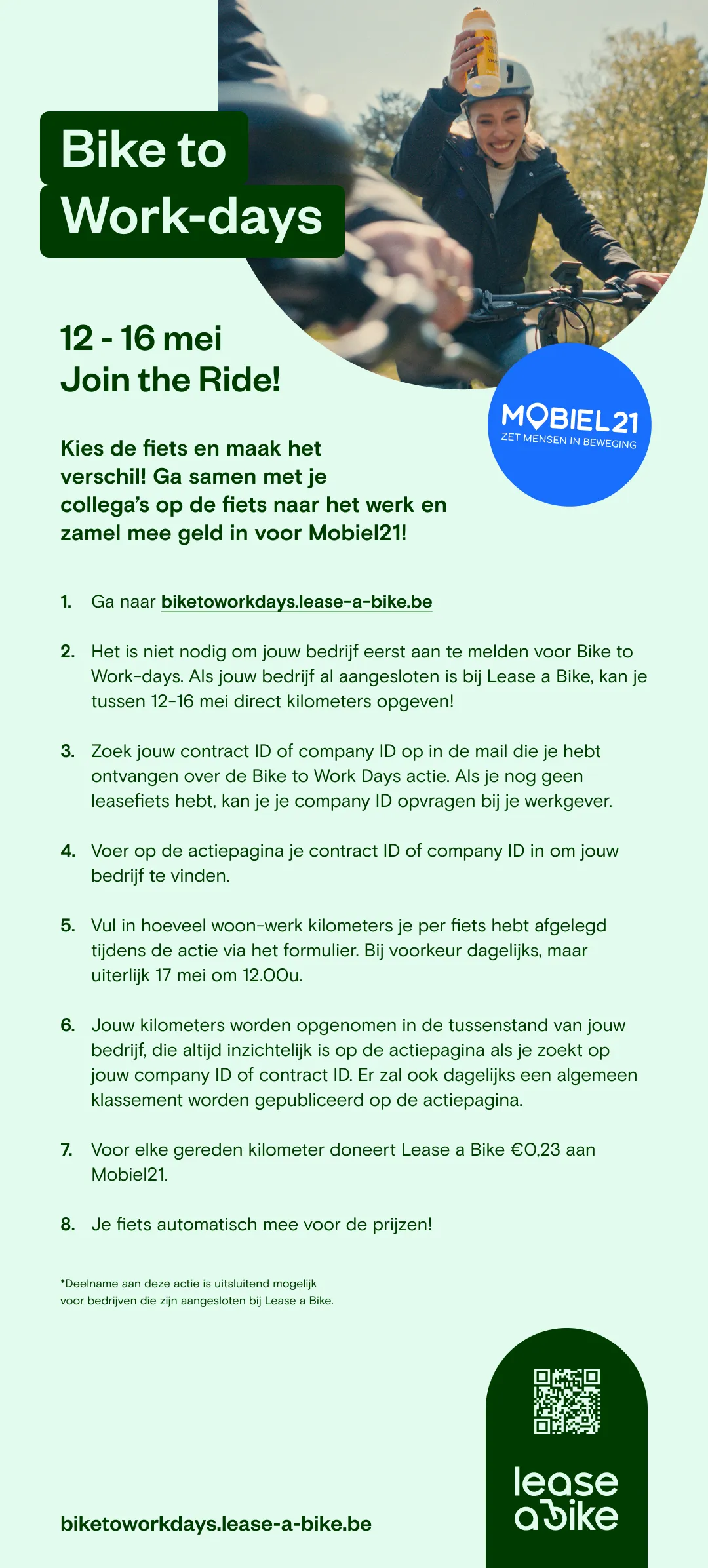 Elke gereden kilometer tijdens 'Bike to Work Days' ondersteunt deze missie – en draagt bij aan een meer toegankelijke mobiliteit voor iedereen.